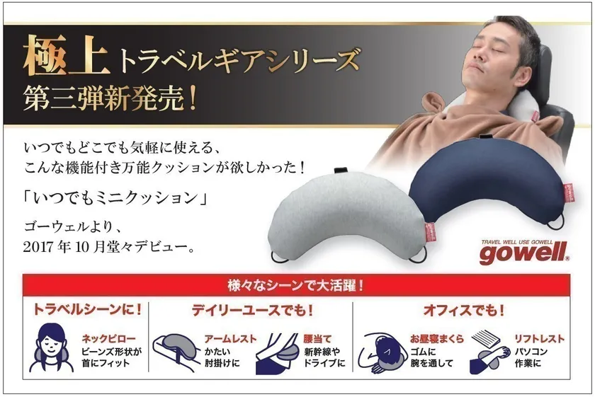 Gowellがこの秋に贈る極上トラベルギアシリーズ第三弾! いつでもどこでも気軽に使えるコンパクトな 新機能付き万能クッションが10月下旬より新登場!