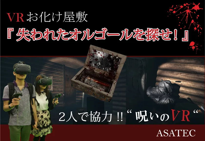 VRコンテンツ制作会社のASATEC(所在地:愛知県豊田市、代表:朝日 恵太)は、アドアーズ株式会社(本社:東京都港区、代表:石井 学)が運営する渋谷のVR施設「VR PARK TOKYO」にて、2人で手を繋いで協力して進むVRお化け屋敷、“呪いのVR~失われたオルゴールを探せ~”を、2017年10月24日(火)にリリースします。