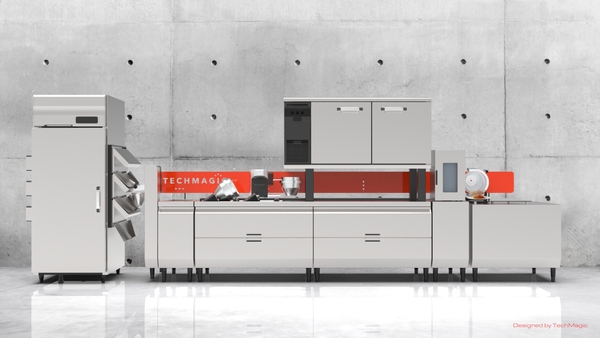 プロントコーポレーションとTechMagic社で共同開発したパスタ自動調理ロボット。パスタ商品を自動で調理するロボットの研究開発を2018年から着手し、約4年の開発期間を経て、1号機が完成しました。今後も持続可能な食インフラを創るために、外食産業の人手不足や人材育成問題等を解決し、誰でも簡単に熟練の調理技術を再現できる自動調理ロボットを導入した新店舗を出店予定です。