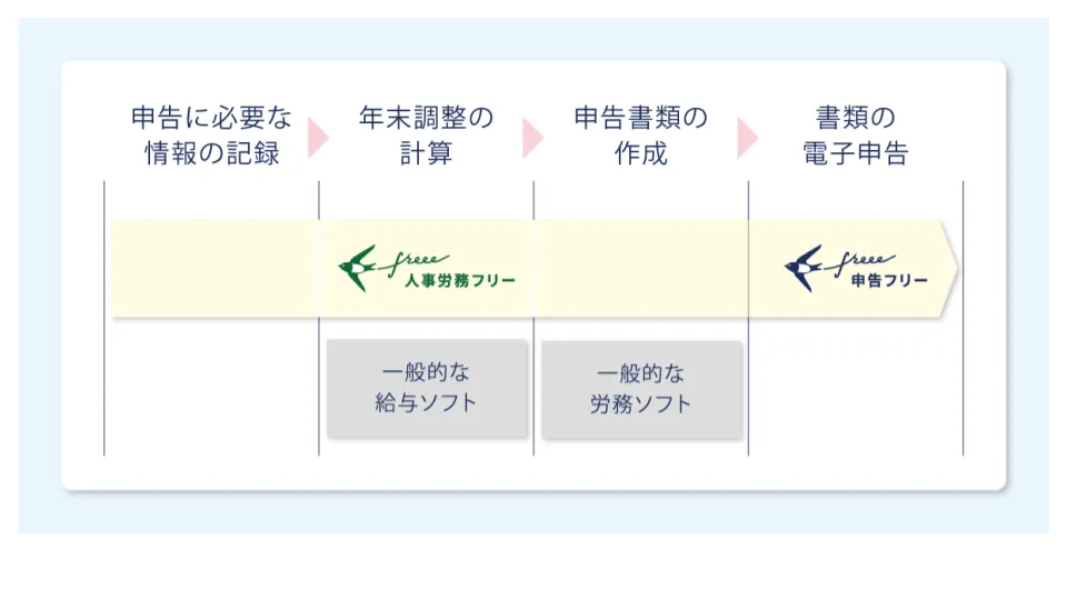 「クラウド会計ソフト freee」も合わせて活用することで、年末調整と合わせて税務署への電子申告がさらに効率よく対応できることになります。