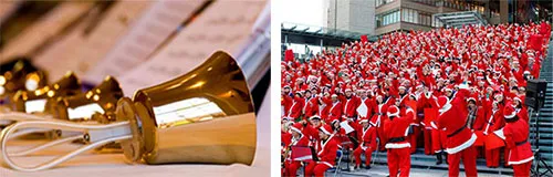 一般公募による市民の皆様とグランフロント大阪従業員がサンタクロースに変身しハンドベルを持って階段に整列。世界最大規模となる約700人での壮大なハンドベル演奏(※)に挑戦します。