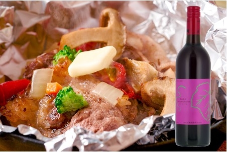 牛肉と秋を迎え旨味の増したきのこを使った鉄板焼きには「まるきベーリーA’21(まるき葡萄酒)」を合わせて。