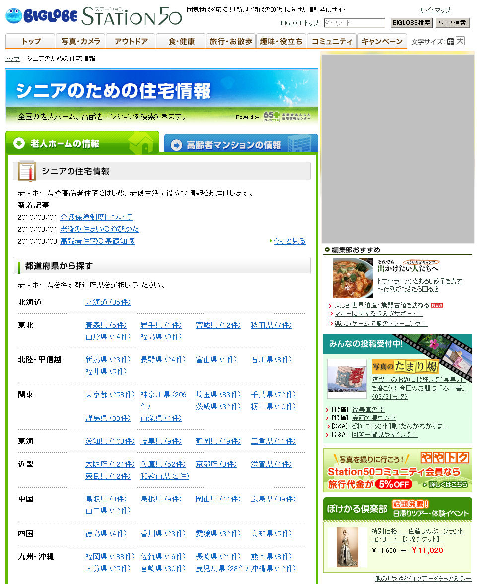 高齢者住宅検索トップページhttp://www.biglobe.co.jp/press/2010/03/100324-2.html