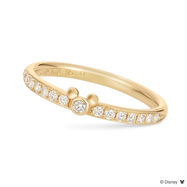 連なるメレダイヤモンドのセンターに「ミッキー」のアイコンをデザインしたハーフエタニティリング。
