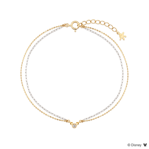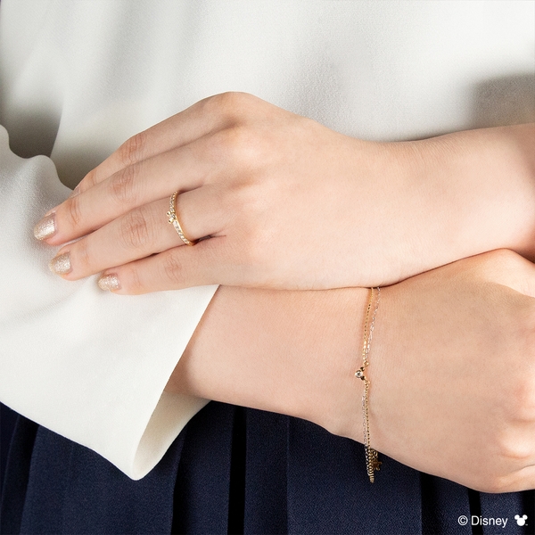 ブレスレットが手元で揺れる度に、「ミッキー」のアイコンにあしらったダイヤモンドが輝きます。