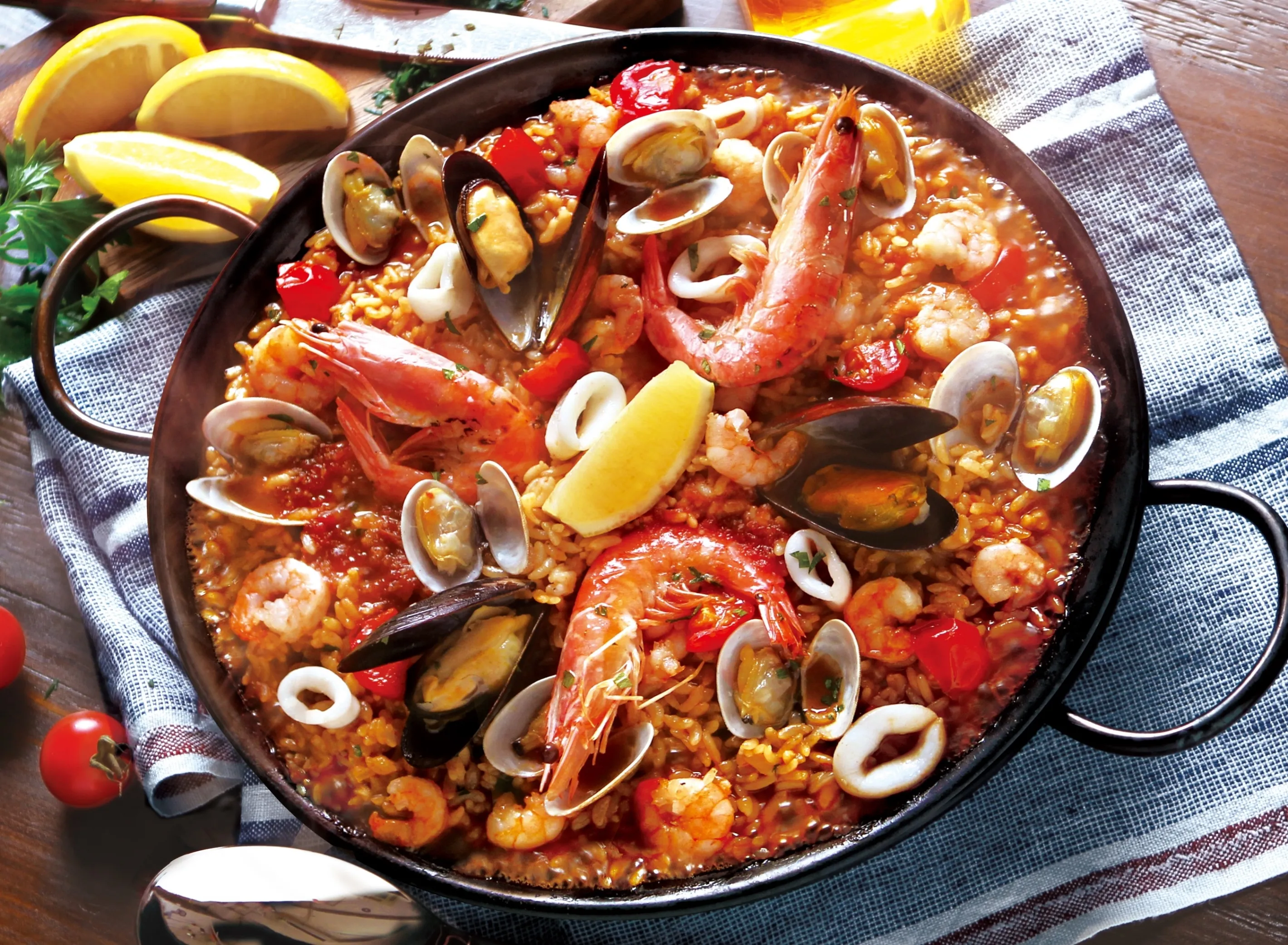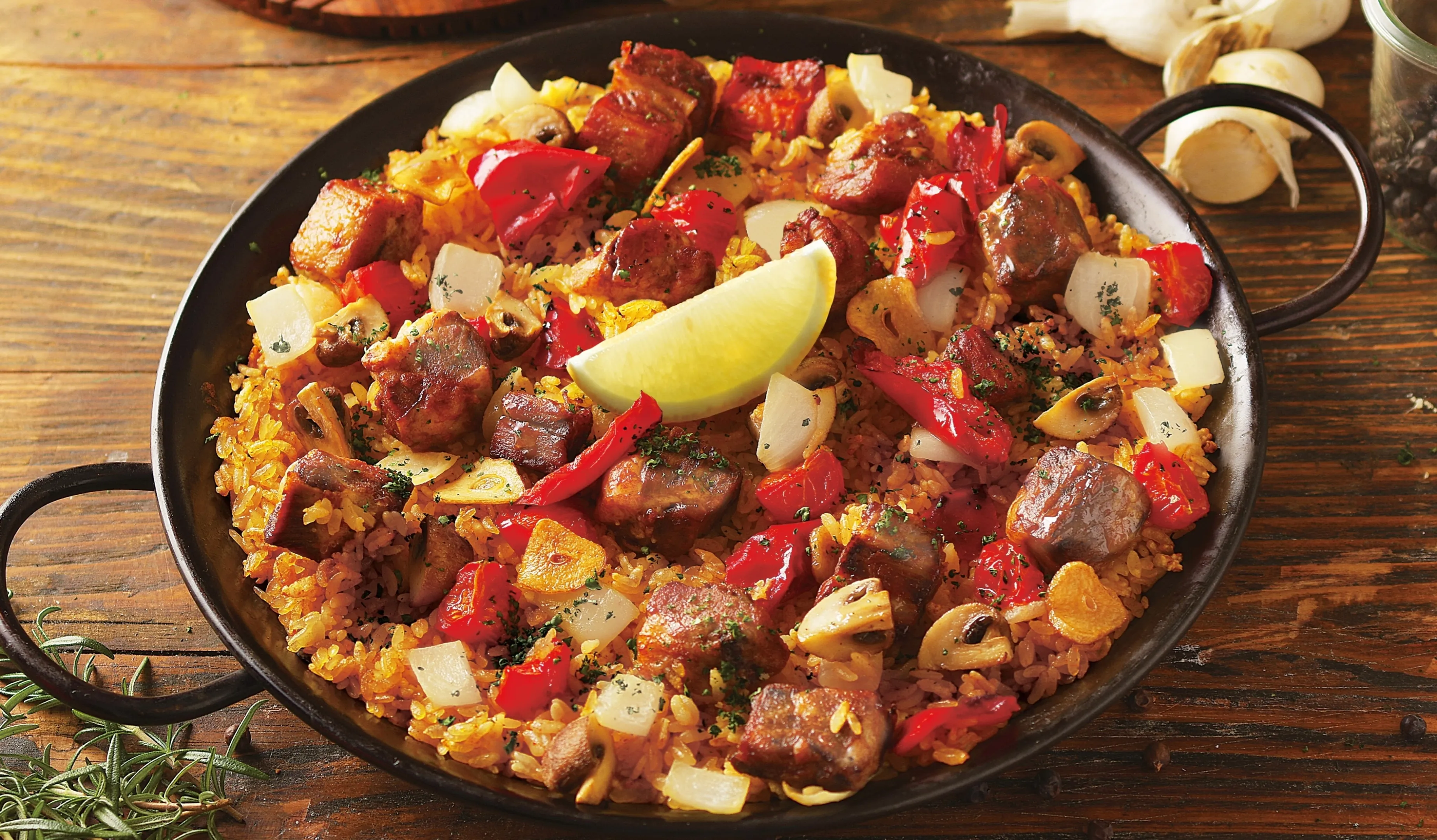 贅沢な本格パエリアは、普段よりちょっぴり豪華な雰囲気を味わいたいホームパーティーや、ご家族やご友人との団欒のひとときを華やかに彩ります。