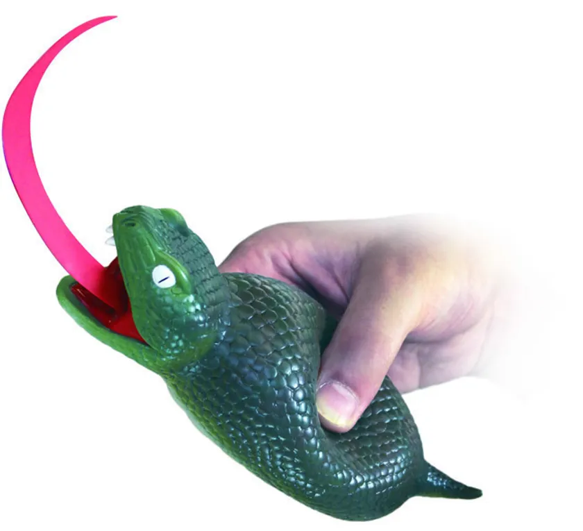 やわらかい本体を押すと、長~い13cmの舌が瞬時に飛出し「ホゲッ!!」と鳴きます。手を緩めると長~い舌がまた瞬時に戻ります。単純ですが癖になる今までにないアクショントイです。