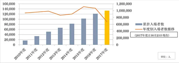 10月23日(月)現在、開業以来の入場者数は、999,652人に達しており、順調に推移すれば、10月25日(水)の午前中に100万人を突破する予定です。