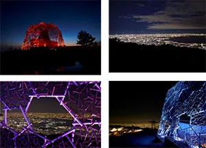 1000万色以上の色彩表現ができるLED照明を使って、限りなく自然光に近い光で展望台全体を覆うフレームを内側から照らす光の演出です。