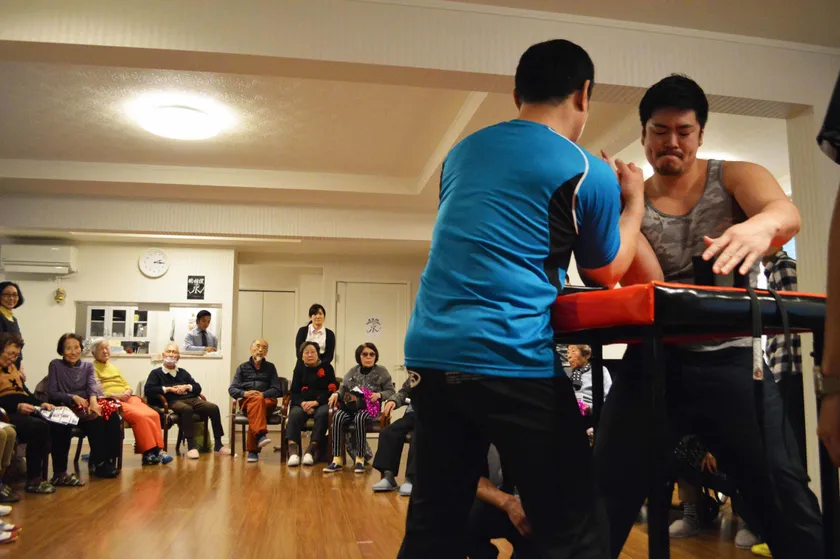 レスラーがいる東京・杉並のデイサービス、 オープン2周年を記念しアームレスリング大会開催!