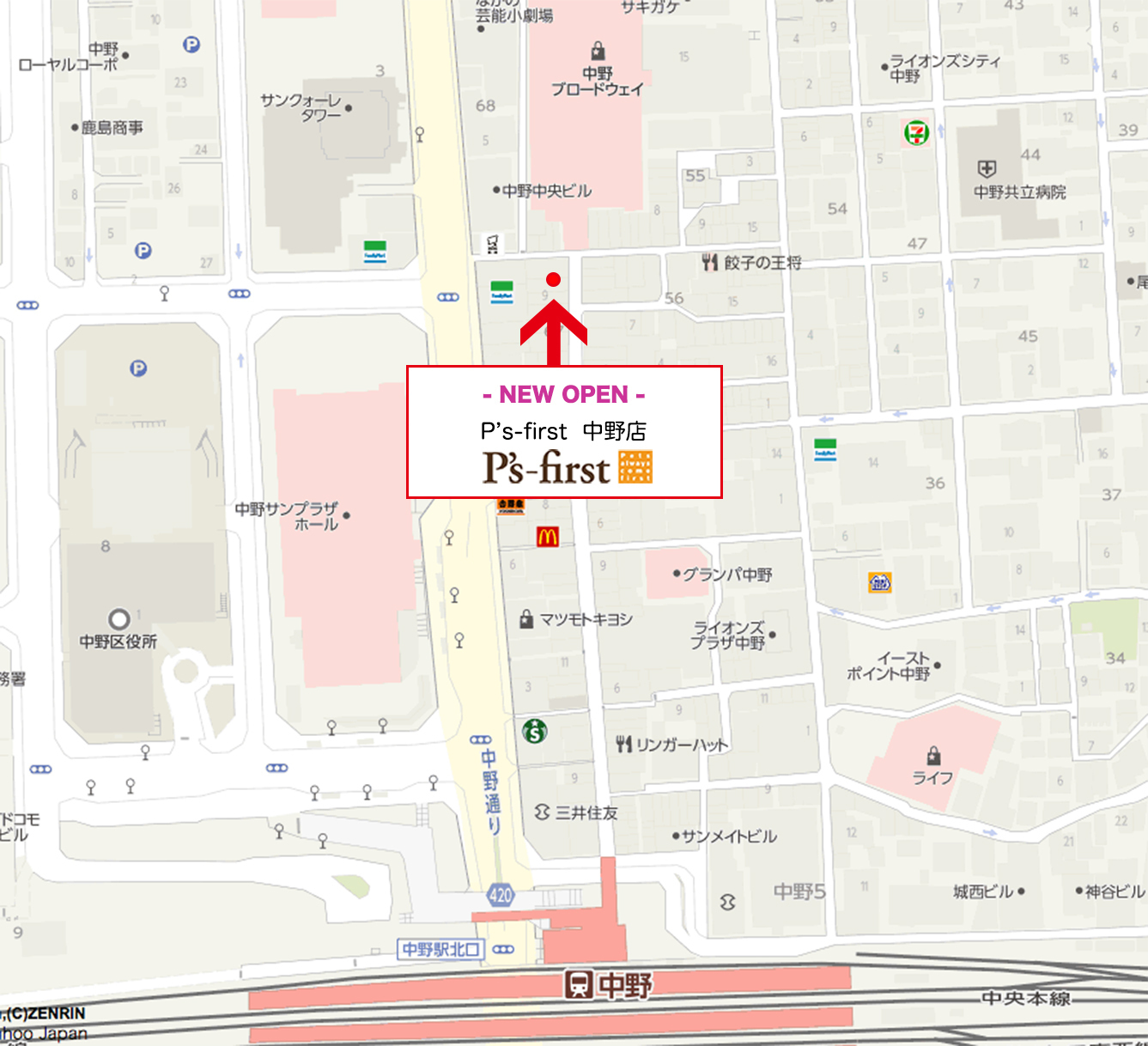 中野サンモール商店街に「P's-first 中野店」をオープンしました。JR中野駅より徒歩3分の立地になります。