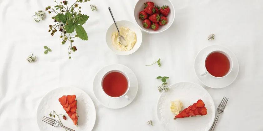 既存の2アイテムに加え、定番のティーカップ&ソーサーやプレートなど6品が登場し、毎日のお食事からティータイムやパーティーシーンまで、使用シーンの幅が広がります。ホワイトのみで統一したシンプル&フレッシュなセッティングはもちろん、お手持ちのワイルド ストロベリーと組み合わせて華やかさの中に抜け感をプラスしたり、テーブルコーディネートの楽しみが広がります。つい手に取ってしまう愛らしさと使いやすさで、気付けば毎日「ワイルド ストロベリー ホワイト」がテーブルに ― そんな魅力にあふれた新作は、日々の食卓にさり気なく寄り添い、華やぎを添えます。
