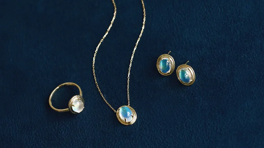 大粒のレインボームーンストーンを使った限定アイテムや、 2ct以上のダイヤを使ったエタニティリングなどを公開