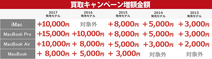 『買取増額キャンペーン』は、通常の査定価格から更に買取金額がアップするキャンペーンです。