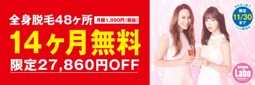 日本初!?脱毛ラボがエステ業界初の 「月額制全身脱毛14ヶ月無料X'masキャンペーン」を 11月1日よりスタート