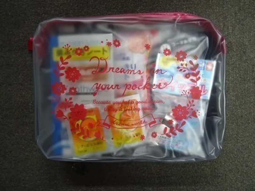 女性向け「MY備蓄袋」のイメージ(中身は汗ふきシート、ビタミン剤、髪ゴム、歯みがきシートなど)