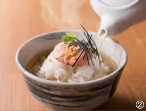 お好みのトッピングを選び、「ほうじ茶」・「お茶漬け出汁」をかけてお召しあがりください。