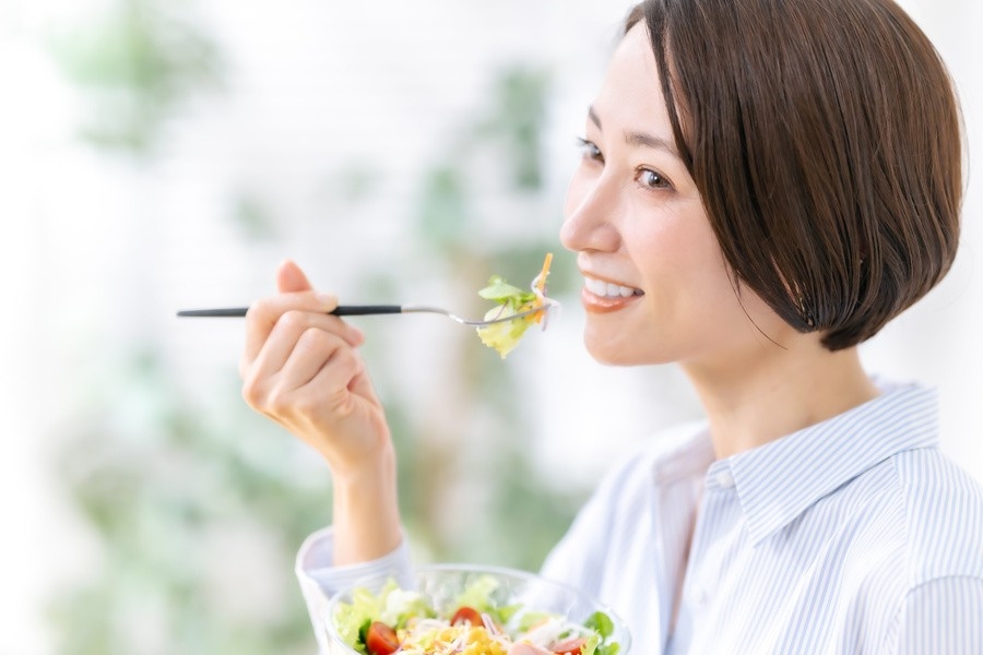 1口につき30回以上よく噛んで食べるのは、満腹中枢を刺激して過食を防ぎ、血糖値の上昇を抑える効果があります。ゆっくり噛むと消化が良くなり、急激な糖の流入を抑えられるため、意識的に箸を置く時間を作るのが大切です。