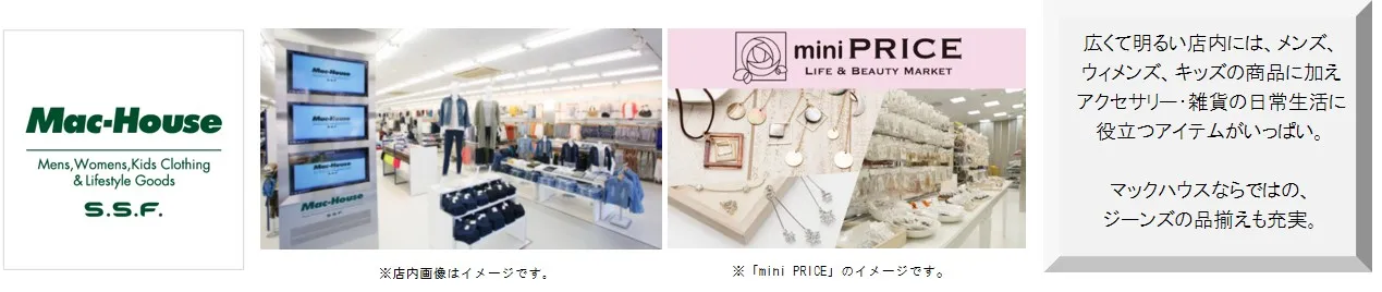 魅力的で低価格なアクセサリー、バッグ、シューズ、生活雑貨等のミニプライスコーナーも新たに加わり、お客様に楽しいお買物体験をご提供します。