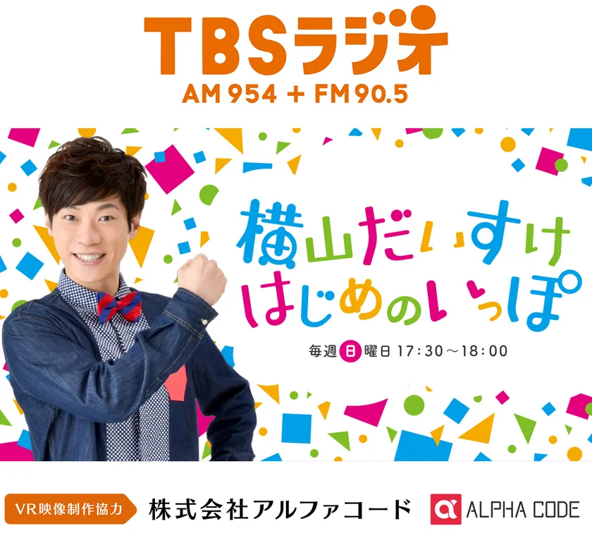 株式会社アルファコード(本社:東京都文京区、代表取締役社長 CEO 兼 CTO:水野 拓宏、以下:アルファコード)は、2017年11月3日、4日に東京・赤坂サカス Sacas広場で開催される「ラジフェス2017 見タイ!食べタイ!もらいタイ!」内「横山だいすけ はじめのいっぽ VR体験スタジオ」にて体験できる「横山だいすけ はじめのいっぽ」の8K VRコンテンツを8K VR動画ソリューションパッケージ「VRider(ブイライダー)」にて制作いたしました。