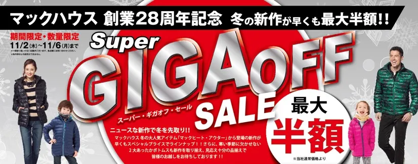 マックハウス創業28周年記念 「Super GIGA OFF SALE」開催