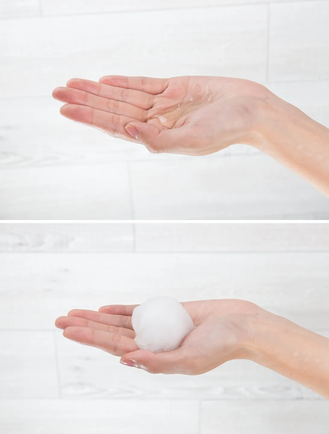 2)手を水かぬるま湯で濡らし泡立てます。