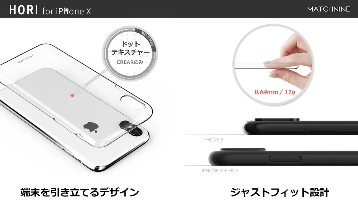 モバイルケース・アクセサリー専門の株式会社ロア・インターナショナル(所在地:東京都新宿区、代表取締役社長:Ally Won)は、高品質なモバイルアクセサリーを提供するブランド「Matchnine(マッチナイン)」から極限までシンプルを追及したiPhone X専用ケース「HORI(ホリ)」を発売しました。