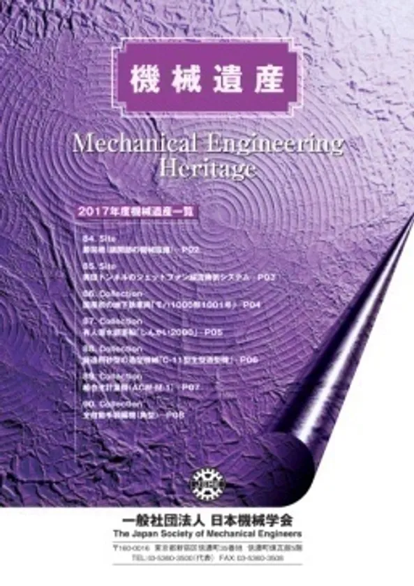 一般社団法人日本機械学会(会長:大島まり 東京大学)は、2017年11月17日(金)に明治記念館にて創立120周年記念式典を開催いたします。120周年記念事業の一つとして、2007年からこれまで認定した「機械遺産」をまとめた記念誌(非売品)を式典参加者に配布いたします。