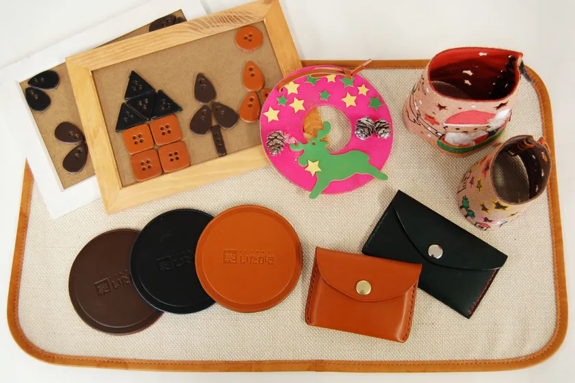 お子様から大人まで楽しめるものづくり体験を種類豊富にご用意しております。若手職人によるオリジナル革小物の販売や、数量限定の革ハギレ販売も致します。