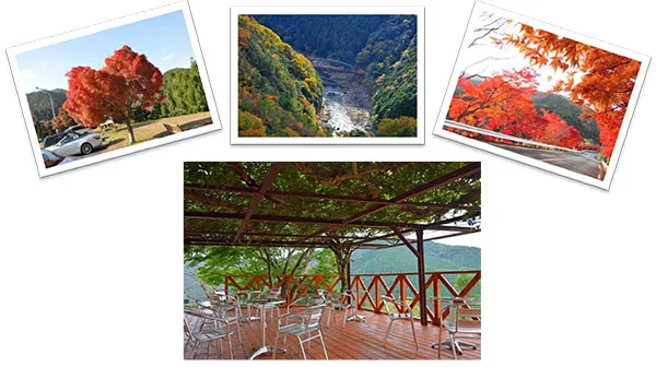 そしてこの秋、渓谷美が楽しめ、紅葉スポットでもある小倉山展望台にテラスカフェが誕生しました!紅葉と保津峡渓谷の絶景をゆったりとしたテラスからお楽しみいただけますので、ドライブの休憩にどうぞご利用ください。