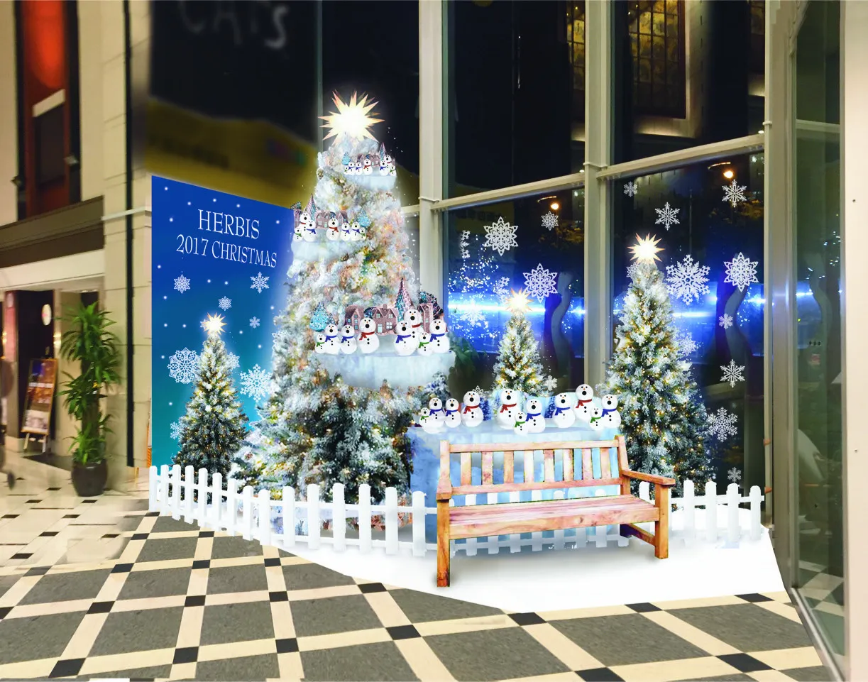 館内各所がクリスマスモチーフのイルミネーションでドレスアップします。ハービスPLAZA ENT B1F東エントランスには大小様々なスノーマンが音楽に合わせて楽しそうに唄う「唄うスノーマンツリー」が登場。スノーマンツリーの前のウッドベンチではフォトスポットとしてお楽しみいただけます。その他ハービスPLAZA ENT 4Fにはヨーロッパ製のオーナメントを贅沢に使用した高級感あるクリスマスツリーを設置いたします。