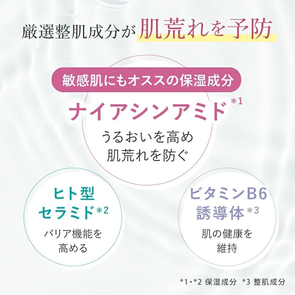 肌荒れを防ぐ効果が期待できる水溶性ビタミンB6誘導体が配合されています。