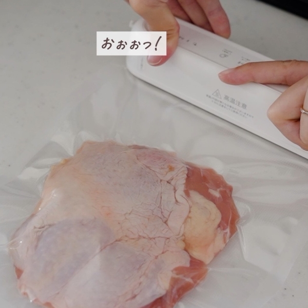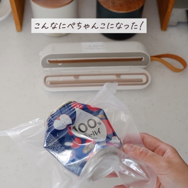 Susealのポイントは軽くてコンパクトでコードレス。デザインが”ころん”としてて可愛い!実際に真空パックにしてみると空気が抜けてぴっちり真空に。このキュッと綺麗になるのがクセになって色々な食品を真空にしたくなっちゃいます。