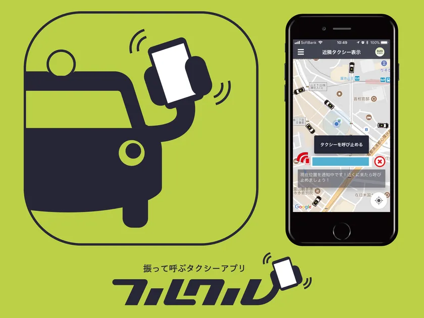 世界初!スマホを振るだけで、空車タクシーが 集まってくるアプリ「フルクル」が提供開始