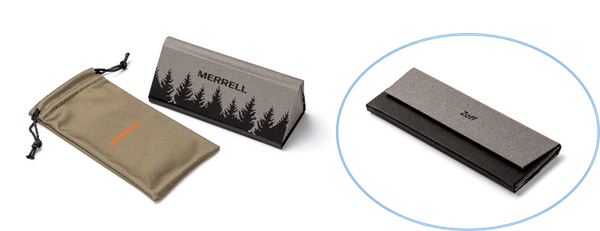 今回のコラボレーションにより、昨夏に話題を呼んだMERRELLの「HYDRO MOC (ハイドロ モック)※」をイメージとしたサングラスが誕生いたしました。ハイドロ モックから着想を得たデザインを細部に施しており、耳にかかるテンプル(つる)の先端に穴を開けることで通気性をアップさせ、テンプル内側にはラバー素材を使用することでフィット感やかけ心地の良さを追求いたしました。また、フレームにはペットボトルから生まれた再生プラスチック材を使用しており、サングラスのレンズ部分には土に還る素材バイオプラスチックレンズを組み合わせています。付属品のメガネケースやメガネ拭きにもリサイクル素材を使用し、環境に配慮したサングラスコレクションです。