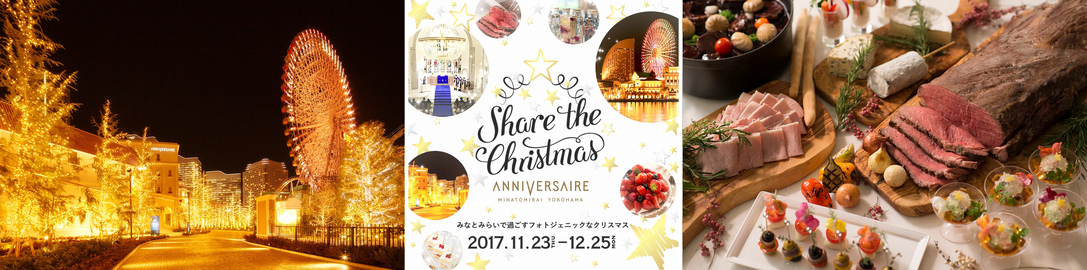 全国でゲストハウスウエディングを中心に、様々な記念日プロデュース事業を展開しているアニヴェルセル株式会社(代表取締役社長:平井 雅丈)は、アニヴェルセル みなとみらい横浜(神奈川県横浜市中区新港2-1-4)にて、クリスマスシーズンのイベント「Share the Christmas」を2017年11月23日(木)から開催いたします。