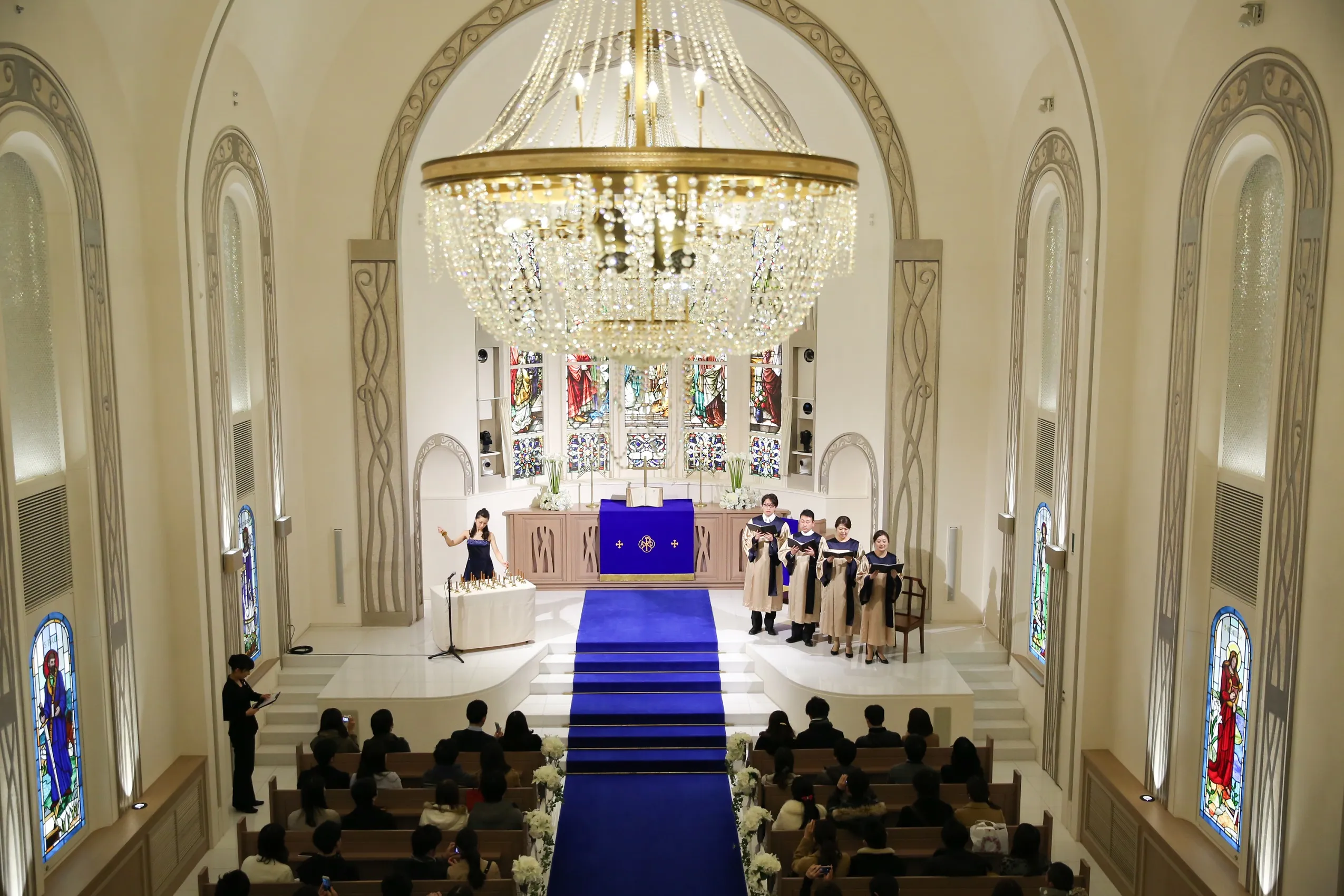 ステンドグラスが輝くチャペルにて、聖歌隊の歌声とパイプオルガン、ハンドベルの澄みきった美しい音色が響き渡りクリスマスムードを最高潮に盛り上げます。