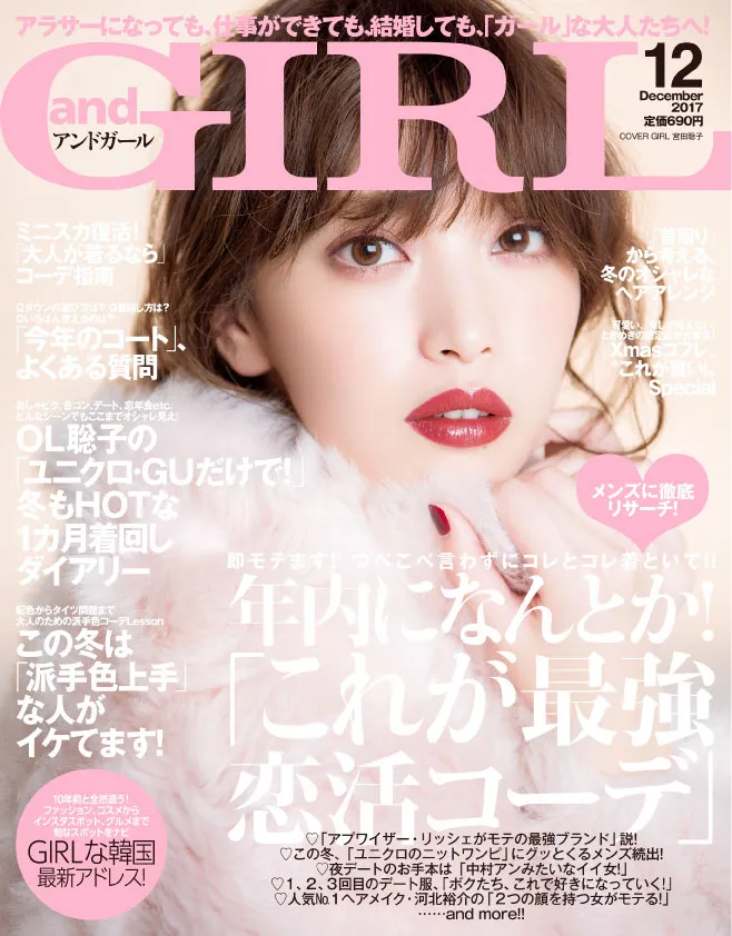 10年前とは全然違う! コスメ、ファッション、グルメ、インスタSPOT・・・ アラサー女子の好きなもの、つまってます! GIRLな韓国 最新アドレス! 『andGIRL 12月号』2017年11月10日(金)発売!
