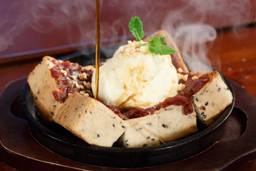 メニュー名:鉄板小倉トースト・とろけるきなこがけ
