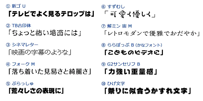 TB古印体 筆の強弱を強調した書体。怖いシーンの演出に最適。