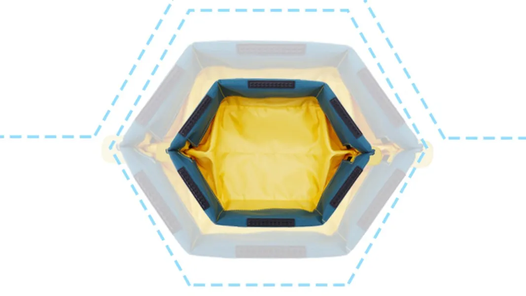 マチを広げ六角形に立てるだけで簡単にバッグが椅子になります。