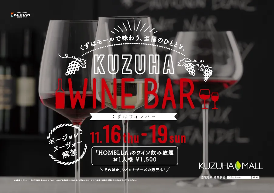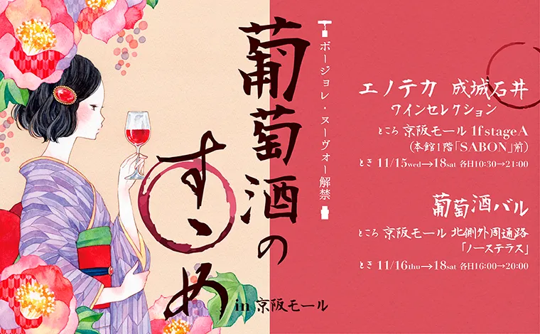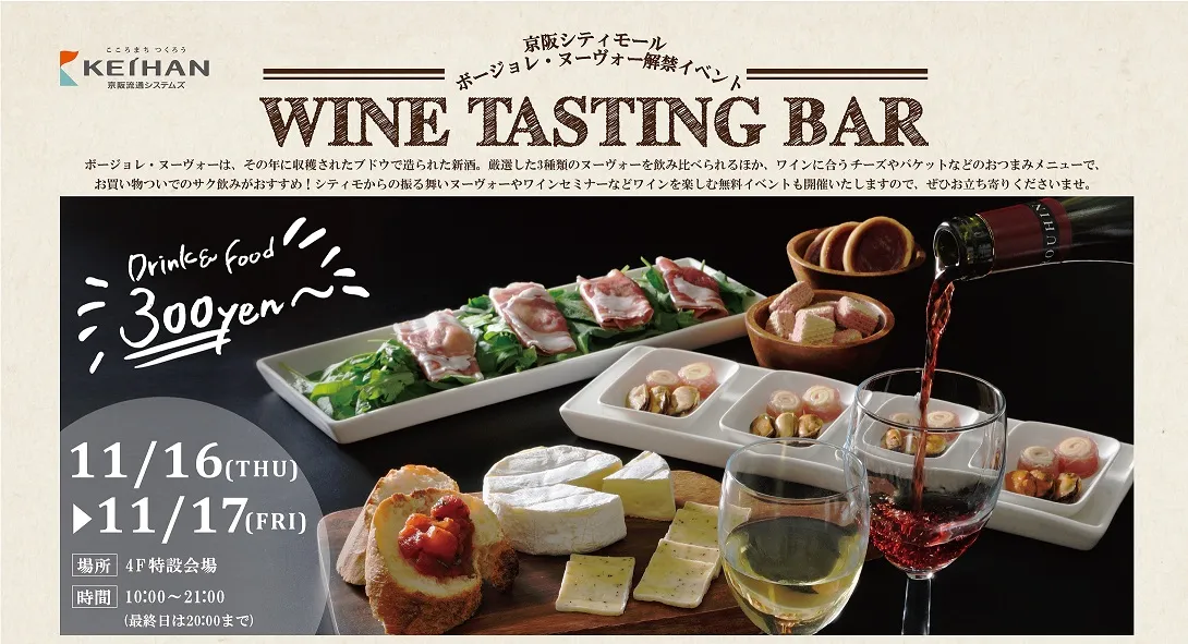 株式会社京阪流通システムズ(以下、当社)が管理運営する京阪沿線の3つのショッピングセンター、京阪シティモール、京阪モール、KUZUHA MALLでは、11月16日(木)の「ボージョレ・ヌーヴォー」解禁にあわせてイベントを行います。