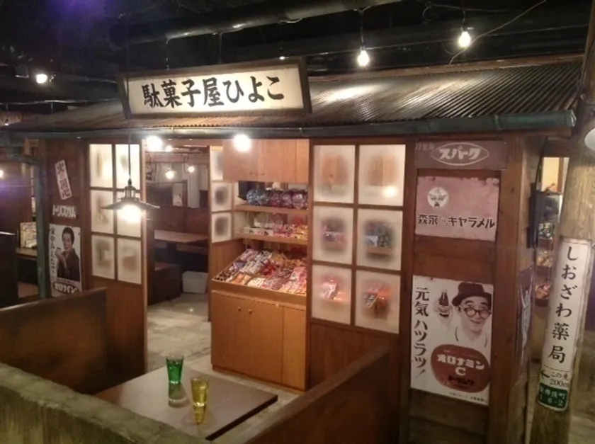 今回オープン予定の『新宿駄菓子バー』の目玉といたしまして店内が昭和レトロな街並みの中、中央部に巨大な「駄菓子屋ひよこ」があり「店の中に店がある」ユニークでワクワク感が楽しめる空間となっております。