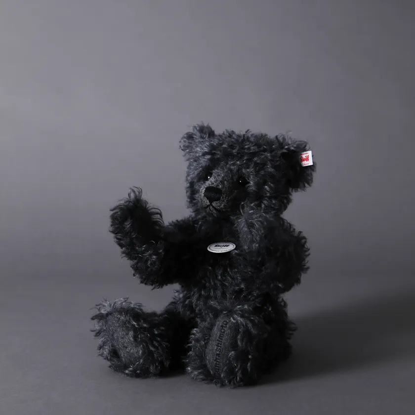 ジュンハシモトからのスペシャルオーダーは、通常ブラウンカラーのキュートなベアが主流のなか、全身ダークグレーのモヘアに包まれたクールで大人な印象のテディベアになります。