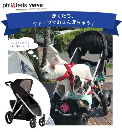 【犬用バギーより壊れにくく、移動が楽な人間用ベビーカーを活用!】