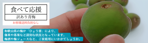 通常の商品として出荷できない傷果の青梅を、ご家庭で梅干しや梅酒などの加工用として消費いただくことで産地応援に繋げたいという想いを込めて、対象商品の送料をJAタウンが負担し“お客様送料負担なし”で販売します。