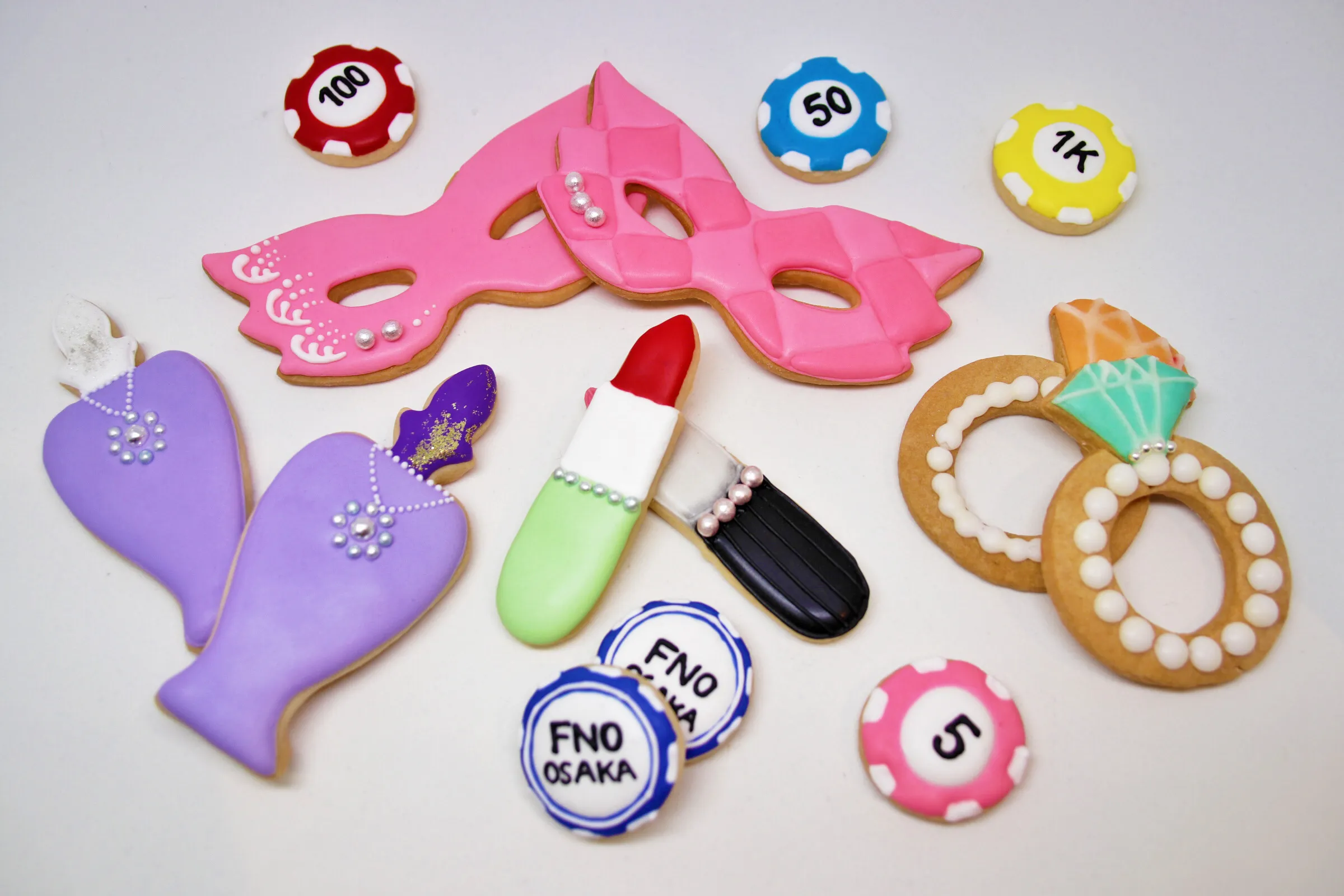 今回の取り組みでは、レコールバンタン大阪校 高等部の学生が今年のテーマである「GLAM GALA」をイメージしたカラフルな仮面やリップのアイシングクッキーを考案。FNO大阪スペシャルウィークの目玉となるSPECIAL DAYSの2日間、阪急うめだ本店 9階祝祭広場に登場するゲームブースの景品として提供されます。