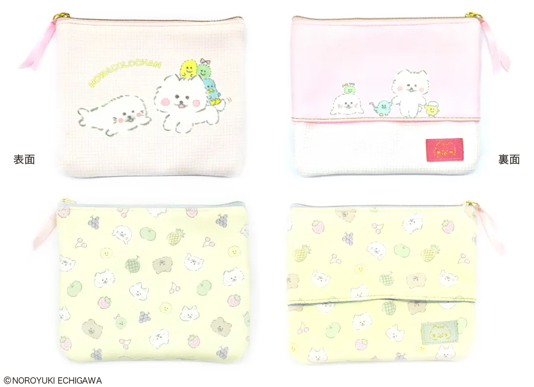 イラストレーター・えちがわのりゆきさんが描く『ほわころくらぶ』のなかま達と、淡いカラーやドット・フルーツモチーフなど、女の子が好きなものがたっぷり詰まったかわいデザインを組み合わせた心がほわっとするアイテムです、