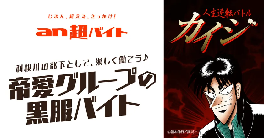 利根川の部下として、楽しく働こう♪ “帝愛グループの黒服バイト”募集! TBSテレビ『人生逆転バトル カイジ』 × 「an超バイト」