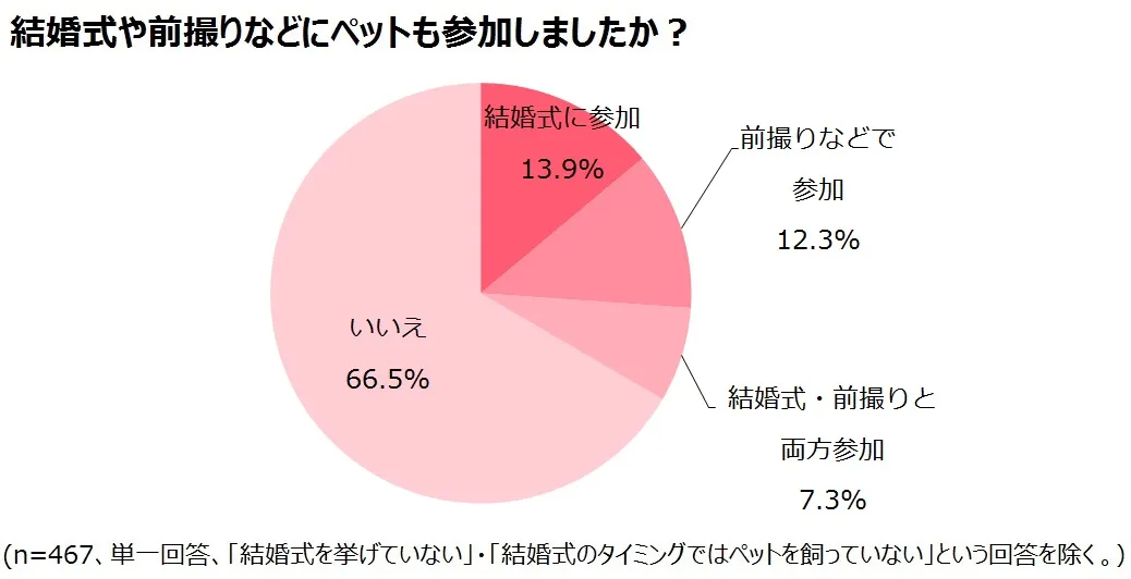結婚式や前撮りに関する質問をしたところ、全体の33.5%の夫婦がペットと一緒に結婚式や前撮りをした結果となりました。